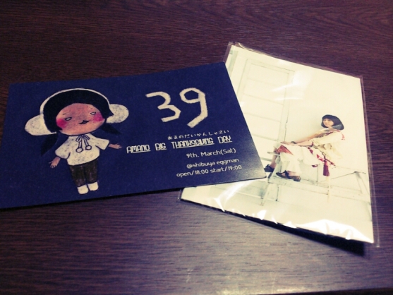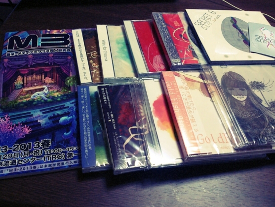 M3に行ってきたのともろもろ Category:未選択 Date:2013年04月30日 どうもーいかがお過ごしでしょうか。いつも拍手ありがとうございます!!!ブログのテンプレ変えたのですが、なんかこれ崩れてんじゃね?って感じになっていたら更新していただくと、きちんと表示されます。私本日(ってもう昨日のことですね…!)M3にゆきましたー!M3は初めてでしたのでどきどきです!人の多さにびっくりしましたーというか私が行った時、超絶列が凄いところが近いところで2つ発生していたのでたまげました。って感じです。そんなこんなで呼び込みにビビりながら買ってきましたーなんかいつもボマス行くとこれの倍以上買うので(笑)並べて、あれ?これだけ!?と思ってしまいましたw十分ですよねwあと、売り切れで買えなかったCDもあったので(その人のCD目当てで行ったといってもという感じのサークルさんだったので、残念でしたが手に入る機会があればいいなあと…ボカロ界隈の方なのでボマス出られたらいいなあ。あと、女性の方初めてですって言って下さったサークルさん!それ私です!クロスフェード聞いて買わせてもらいました!って言えなかったので‥!それで今回、ライブがあったので東京に行かんとーってなってM3に行くベーと思って足を運びました。Lyu:Lyuのライブに参戦してきましたー!ハウスの照明がかっちょよくてびっくりしました。田舎のライブハウスとは訳が違いますね!音も良かったですし、安定感もあって凄く良かったです!行って良かったです!前日、ニコ超のボカニコ村の配信とTS視聴してて、すっごいノリノリで原稿してた私ですが(内心かなり焦っていますがw)、手を振り上げたい欲にかられていたのでなんだかすごくすっきしりた気分です。ライブといえば3月9日に天野月さんのライブも行ってきました。後ろの方だったので全然つっこ見えねえ!って感じでしたが(ほんと5秒くらいしか見えなかったですw)、凄く楽しかったです。こちらも行って良かったー!入場のアレと来場者に配られたポストカードです。つっこさんのお写真でした。そんな感じで、GLFesの原稿が結構かなりやばいのですが、そんな日でした。あと、GLFes9のサークルスペースが発表されましたね!私のいただいたスペースは「イーグル34」です!総ページ数120ページ前後程になってしまう感じなので、原稿から離れると時間計算ばっかりしてしまいます。コミティアの方の原稿はほぼ終わっているので、表紙描けたらサンプルあげたいと思います。いつもの前日にサンプル公開は今回はないんじゃないかなフフフ‥と思ってます。ではでは、がんばりますので、是非ちら見だけでも足を運んでくださると嬉しいです!よろしくお願いいたします! [1回]