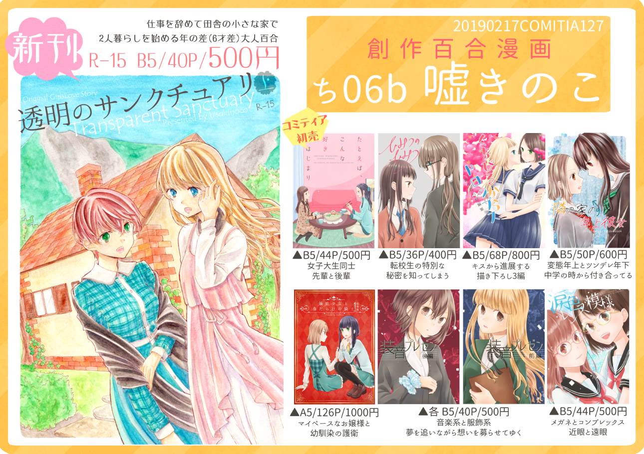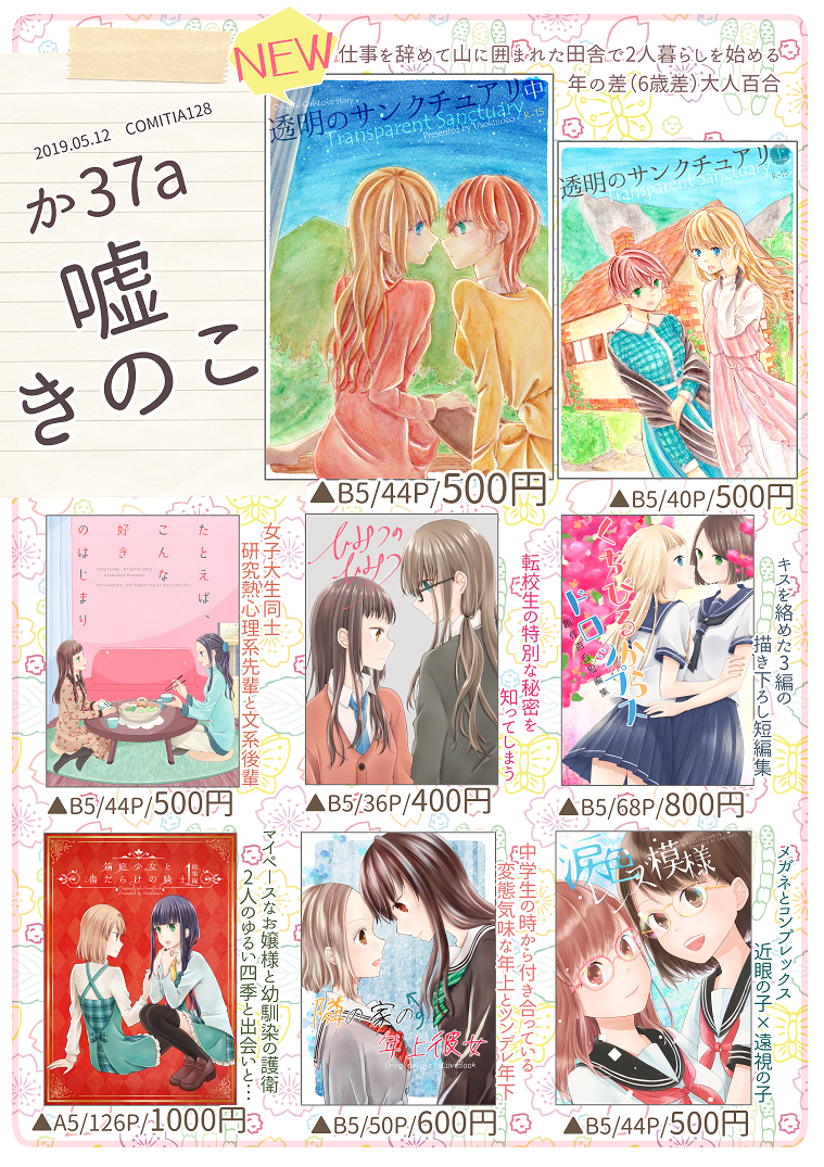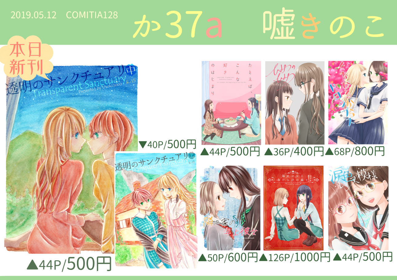 2019.05.12 COMITIA128 か37a/嘘きのこ にてお待ちしております~!