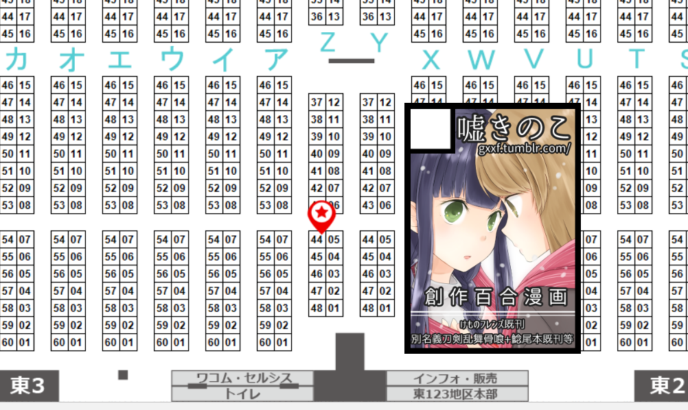 今回、コミティアでは久しぶりの西なのですが、1階・2階と分かれており変則的になっている為、結構移動が面倒かもしれません。