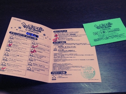 なんじゃたうんのうたぷりこらぼに当選したので遊びにいってきたのだの巻 Category:nikki Date:2013年09月15日 どうも、こんばんはです!この、ここを見て下さっている人にはまるでどうでもいいタイトルだと思いますが、日記を書きます(笑)うたぷり知らない・知っててもなんじゃのこらぼイベントに興味のない人が見て面白いのかどうか…という感じですが日記です。 さてさて、アニメ二期から私の人生に落雷してきやがった(笑)うた☆プリ。そんなうたぷりがなんじゃたうんとこらぼとのことで遊びに行ってきました。(抽選に当選した)ぼっちなんじゃ10:30入場で整理番号10番以内というなかなか良番号だと思われる順番で運を使いまくってしまった感を引きづりながらいざ…!! 上のはイベント参加証とガラポンとわなげのリピート券です。まずはわなげに並びました。わなげは2本で1セット一度で2セットまで出来ます。奇跡的に巾着ゲット!!もう一回はステッカーでした。リピート券貰いーのまたわなげ。奇跡的にPOPスタンドゲット!!もう片方はステッカーでした。次にガラポンの整理券を貰いました。その時点で11時10~20分くらいだったかしら(覚えてない)ガラポンの集合は13:10時間結構あるなーてことでクーヘンクッキーとタンブラー(受注販売)を買いに行きました。その時点でクッキー殆どのキャラが売り切れでぼくはわたしは…!!!てことでトキヤさんにしました。(画像はそのうちひょっこり出てきます)そしてー餃子を食うべ!てことで まぁ様の餃子。美味しかったです。(小並感)桜がお上品でした。まぁ様入りますって言ってくれました。お店の人が。よし、次は甘いもの食べよう ぱいせんのフラッペ。かき氷とか今年初めて食べたわ… まぁ様のメロンパンに見えるけどシュークリーム。メロンパンは聖川さんの好物です。これよく出来てるよなー。表面はほんとにメロンパンっぽいけど、シュークリーム(説明へたくそ)小さい小さい言われてるけど普通にこのくらいが丁度良いなあ。と、ここまで食べてガラポン列に並びましたー。そこからポスカ三昧ですよーまじで前後の金賞率に泣きたくなりました(笑)一回チャレンジした後再度整理券を貰う。この時点で…(覚えてない)集合は15:10(覚えt…一時間ちょい余裕があったので一回離脱して、ちょっと座って休んでからアルタ見てまわってました気に入る帽子と出会えて良かったー!そんな事は余談なのです再入場してガラポンなのです。ポ、ポスカァァァこのままじゃ悔しくて…!てことで(以下略待っている間に餃子食べました。 トキにゃんの餃子餃子もねこ形でかわいかったっすそしてガラポン三度目の正直とかそんなのなかった。ポ、ポスカァァァ次並ぶ時には普通に並んでいく感じでした。人数かなり減ってきたのでで、その時御曹司クッション終了のお知らせ四回目になると、もう何も考えられなくなってました(笑)缶バッジとか殆ど終了していましたしで、そこでクッション・缶バッジ×4という今更感満載な運が巡ってきましたキラキラと、いうことでこの自分の日本語の下手さを披露してしまった感満載ですが以下戦利品です。まるでおもしろおかしく綴っていけないものなのね! ガラポンの景品。ポ、ポスカァァァ最後の方缶バッジ、嶺ちゃん藍ちゃんらんらんしかなかったので。藍ちゃんその前にゲットしてたの忘れt…クッションあるのが救いです…クロスもゲット出来て良かった…クロスは殆ど終了してなかったけどこれがなかなか出てこないのよ多分 わなげの景品。あ、ガラポンの方にクッション入らなかったのでここに居ます。何気にクッションがあればまぁ様コンプ…!!うっかりステッカー藍ちゃん同じの選んでた(笑) デザートと餃子を買うと貰えるブロマイドとクーヘンクッキークッキーの賞味期限が私の誕生日だったので、その時トキヤさんを食べようと思います。まさか初なんじゃたうんがうたぷりこらぼの為だとは思ってもいませんでした。そして何も知らない入場客さん方はさぞかしびっくりされたのでは…なんでこんな人多いんみたいなでも楽しかったです。とても思い出に残る一日でした。朝10:30~18:00近くまで居るとは思っていませんでした(笑) それから、また余談ですがなんじゃを出た後にあくしーずふぁむに入ったらとってもまぁ様っぽいバッグを見付けてしまってつい買ってしまいました。まぁ様っぽいっていってもピアノっていう位だけどあとこの紺プリクロっぽい色かなってすっごい軽いバッグなので普通に使おうと思います。そんな一日でした。あと、メッセージノートにまぁ様の絵とメッセージかいたら肝心のほくろを描き忘れてしまったのが悔やまれますごめんまぁ様…あ、まぁ様というのは青い人です(雑)餃子もデザートもなかなか良くって普通に遊ぶ感じだと子供と一緒なら楽しいだろうなーと思いましたナンジャ改めてうたぷりの人気とシャイニング事務所のアイドル達にお財布を捧げている気持ちを実感しました。ほんとに皆