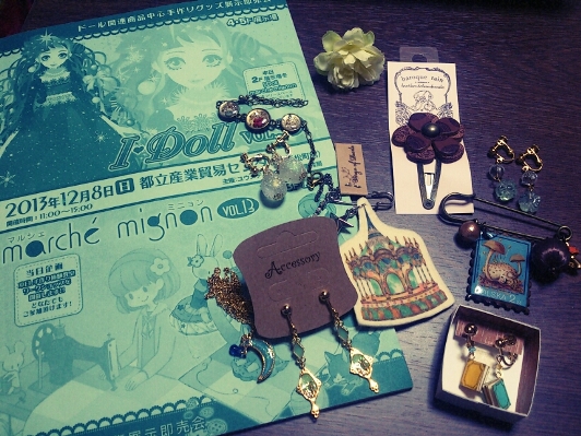 マルシェ・ミニョン!+α Category:nikki Date:2013年12月11日 どうもです。日記です。12月8日にマルシェ・ミニョンに遊びに行ってきましたー!昨年の12月にも行きました→〔まるしぇみにょん〕そして、その後原宿いって池袋サンシャインシティの展望台にシャイニングクリスマスのツリーを見にいってきましたー! マルシェミニョンの戦利品です! 右下の本の形をしたイヤリングは紙で出来てるみたいです。他に折り鶴のイヤリングもありましたがピアスだけだったのでイヤリングがあれば欲しかったな…あと楕円のイヤリングも凄くかわいい…ベニテングタケもすきだけどそれ以外のきのこに出会えると凄く嬉しい… また耳あてを買ってしまった…羽の形の耳あてもあってすっごい可愛かった… カチューシャもかわいいけど、白っぽくて緑っぽい花が付いているやつは耳に引っかけるみたいです。これは左耳用こんなのあるんですねすごくかわいい…昨年は半面ちょい位使ってたかなーという記憶ですが今回は一面使っていてかなり賑わっていたのではないかなーと思います。なんだかんだ結構買ってしまって満足です…体力と根性がないので、時間あるととりあえず原宿あたり行ってしまいますが行くからには色々歩いてみたいなあと思いますそして池袋サンシャインシティ。行って良かったです。ツリーを間近で見られて良かったです。 いい眺めでした。 ツリー!賑わってはいましたが、写真撮り易かったです。無言で譲り合って撮ってた感…いいカメラ持っているひとがとても羨ましかったです。 どれも個々の個性が出ていてとても綺麗でした。 所詮すまほ撮影クオリティおそらく今年東京行くのはこれで最後かなと思います。そしてコッソリお知らせというかご報告な感じですが2月のコミティアは申し込んでおりません。5月はまだ未定です。3月のGLFesには参加したいなと思っております。お会いする機会がありましたら是非、よろしくお願い致します。師走に入って10日過ぎました。あっと言う間に冬コミがやってくるんだろうなあと思います。今年の夏コミは本当に暑かったですね。冬も冬で寒いので御身体にお気を付けて過ごしてください٩(๑❛ᴗ❛๑)۶ ではでは! [0回]PR